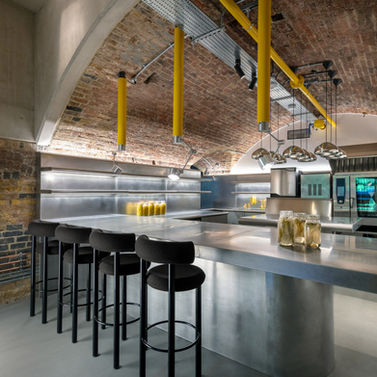 Coal Office restaurant is a collaboration between Michelin Star rated chef Assaf Granit and Tom Dixon. The restaurant is a laboratory for new ideas in flavor, design, comfort, and interiors with food being served across its three floors designed to with deliberately distinctive characters.